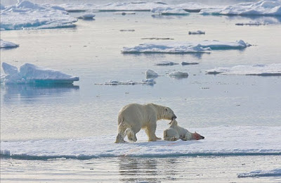 'Thus, at this time of year, young polar bears may represent a possible food source for adult males. As the climate continues to warm in the Arctic and the sea ice melts earlier in the summer, the frequency of such intraspecific predation may increase.'
